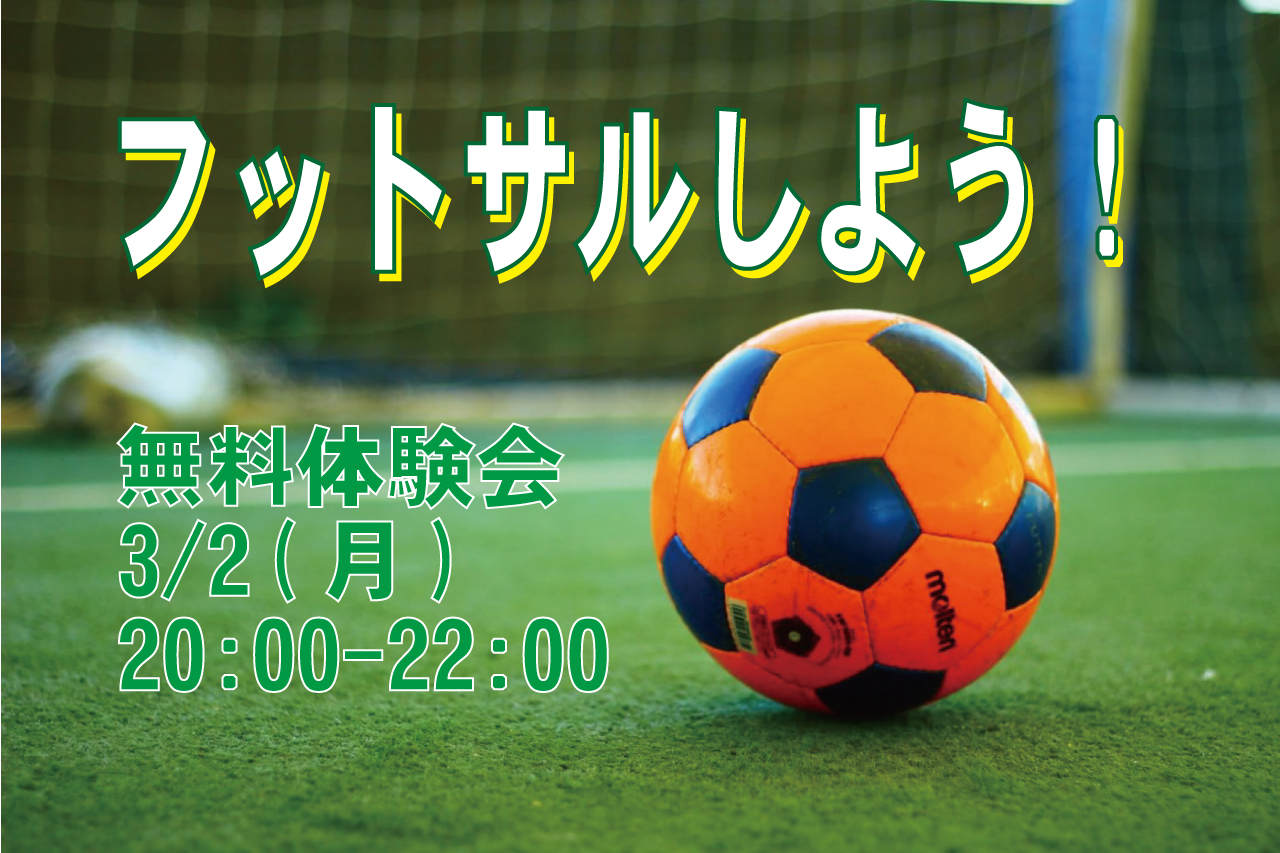 フットサル、月曜コース開催決定!【3/2pm8:00-10:00無料体験会】